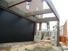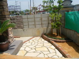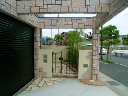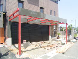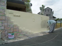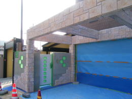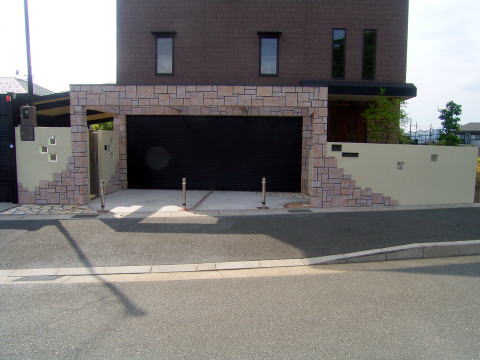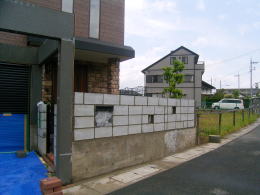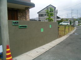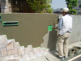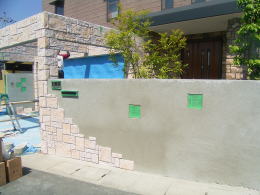 ラスカット(下地板)を張り、モルタル塗り、石を張付けました。
