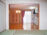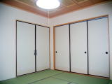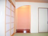 明るい色調の和室に、床の間だけ色を変え半月をイメージし、アールをとった