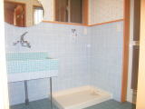 洗面所・脱衣室も水をかけて、洗える用にとタイルのご希望で