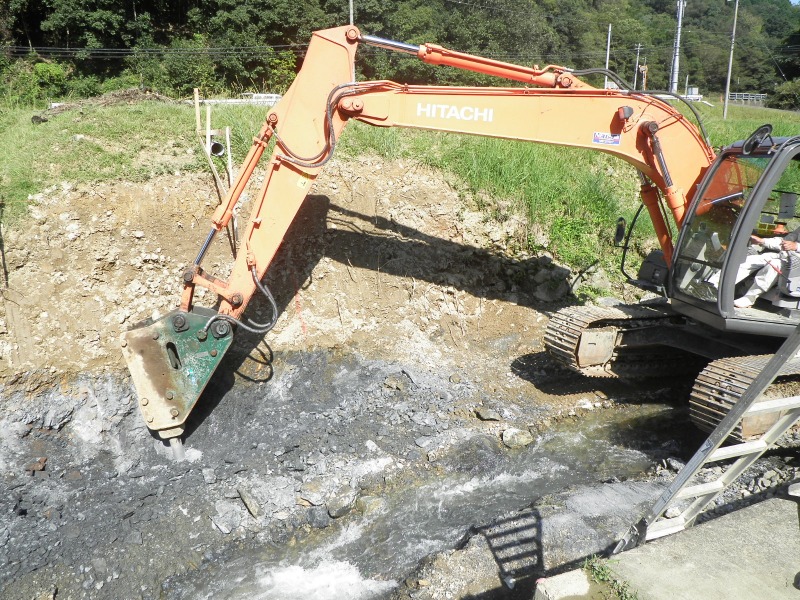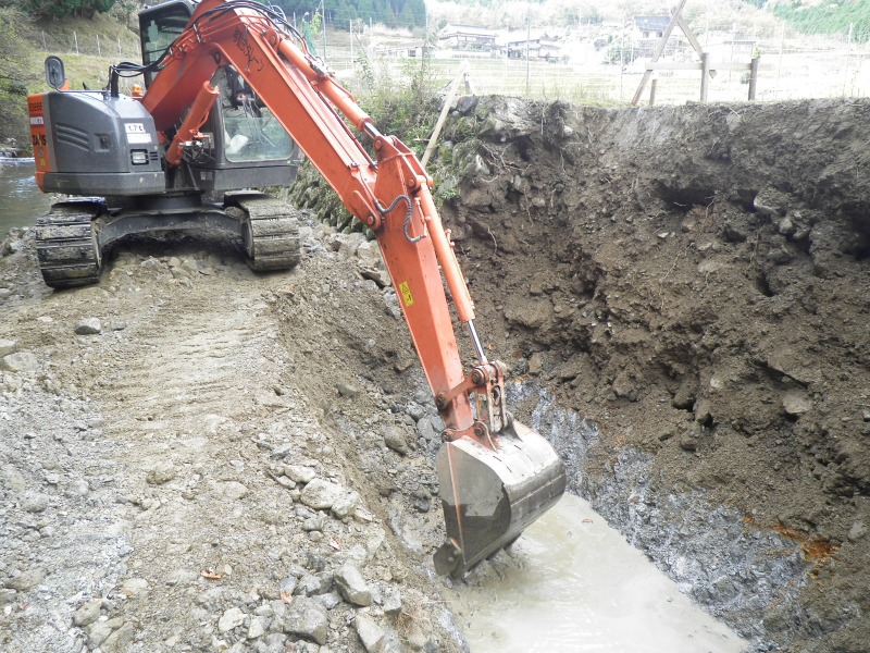 平成26年8月の豪雨により、福知山市各地に甚大な被害をもたらしました。弊社でも大江町大呂地内の河川災害復旧工事を請負い、平成27年9月より着工しました。