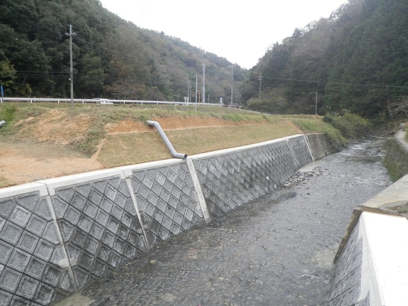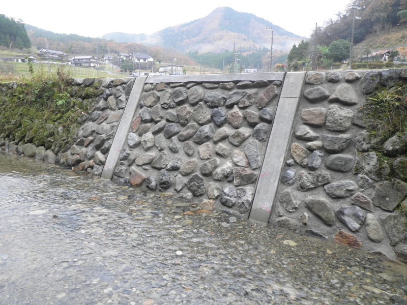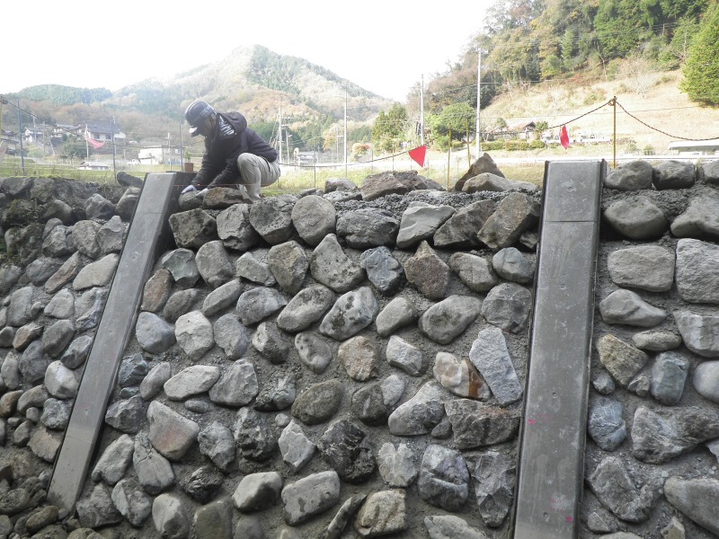 大呂の現場では現地の石を利用して護岸を作りました。