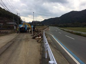 弊社も冠水した福知山管内道路の土砂、流木の撤去作業にあたっています。