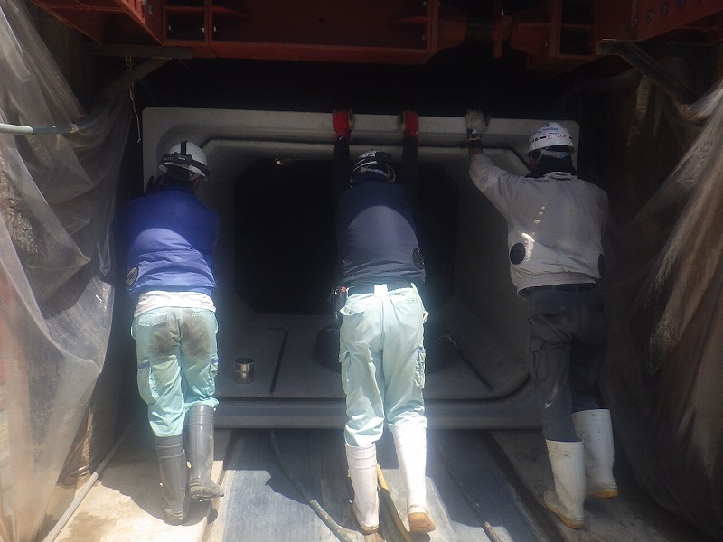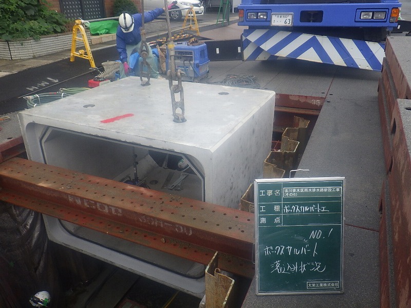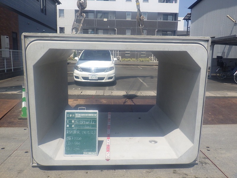 これが、ボックスカルバート(高さ1.76m 幅2.32m 長さ2.00m 重さ6.80トン) です。
