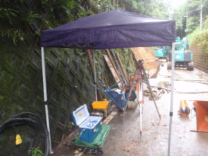 現場ハウスは、クーラー完備で、経口補水液(オーエスワン)、塩飴、瞬間冷却剤を常備し、初期の熱中症対策も行っています。