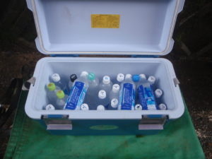 現場では、休憩所を設けスポーツドリンクで水分補給をします。