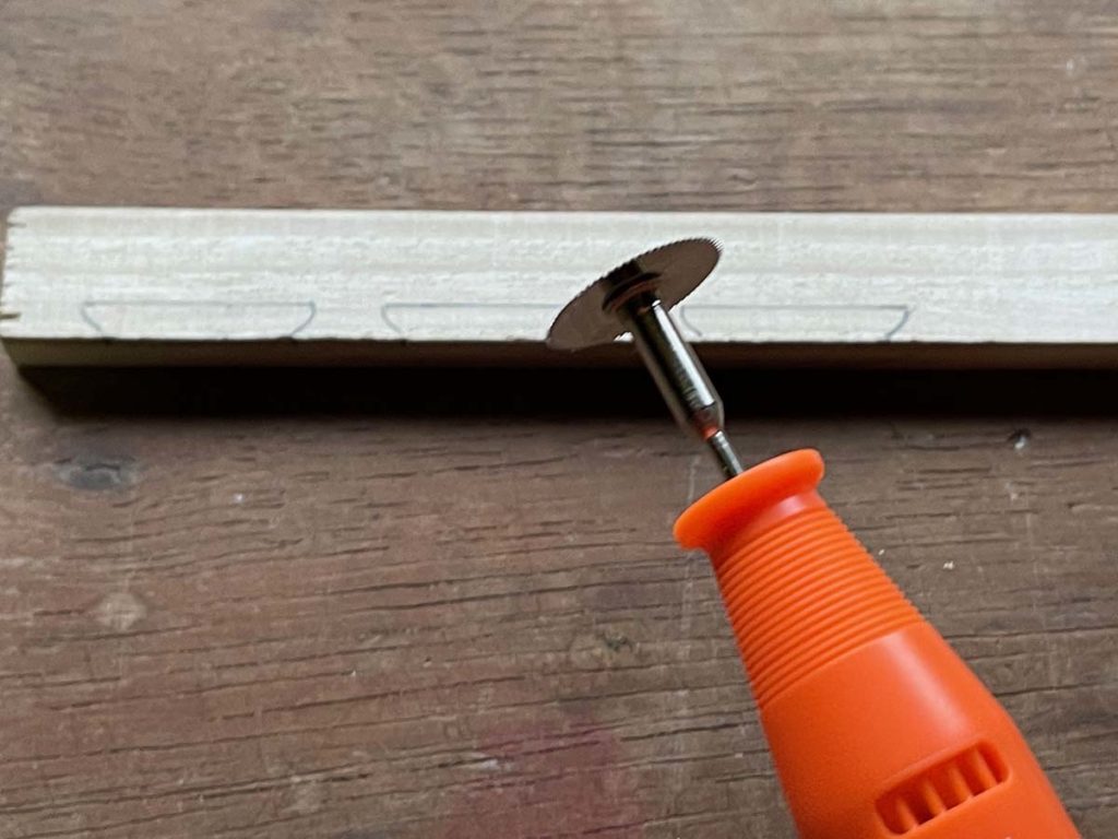 ここで今度こそミニルーターの出番。彫刻刀では鋭角な所は削りが甘いのでちょうどいい感じに削れます。