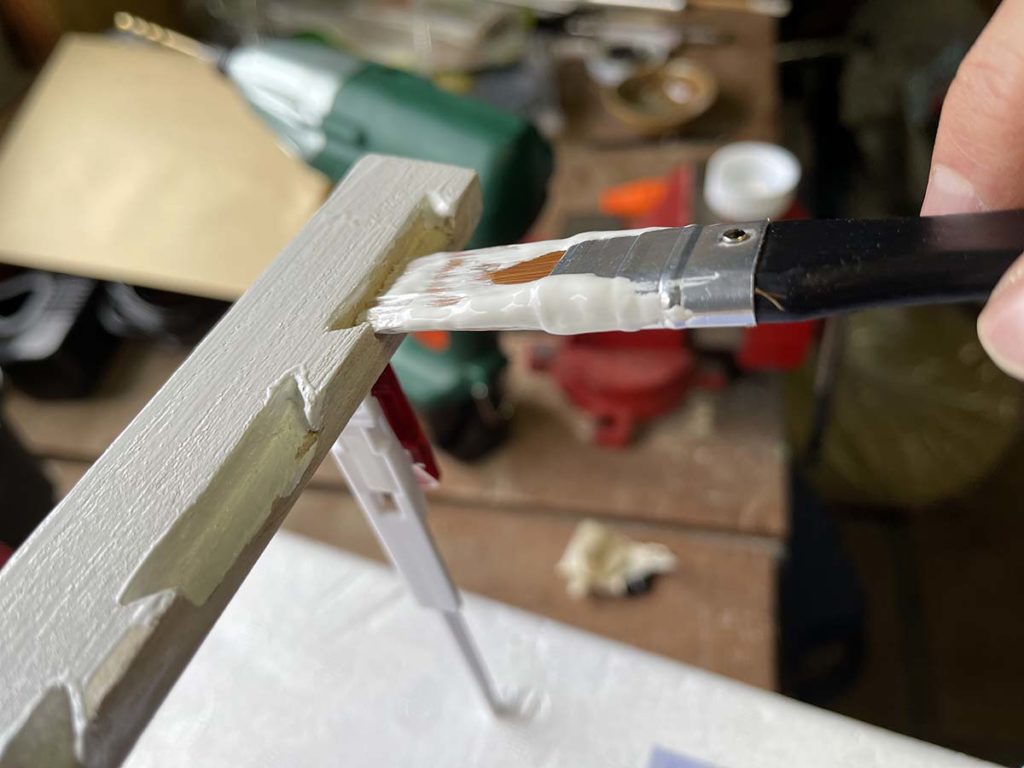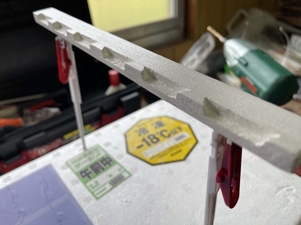 大体削れてきたら、削りすぎた所や欠けた所をパテで補修。