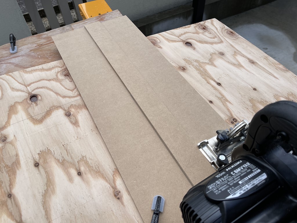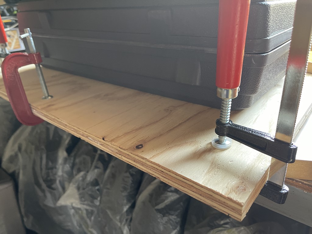9mmの合板なので強度が心許ない。木工用ボンドで2枚貼り合わせて18mmの強度アップへ。