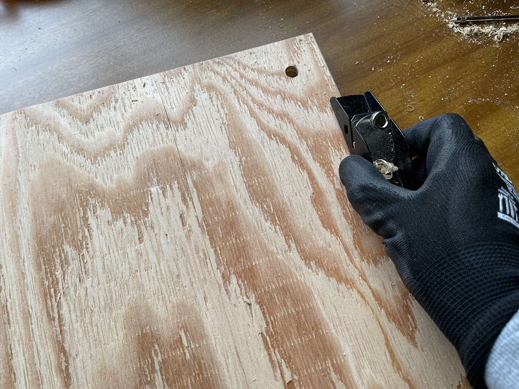 四隅に長ネジが入る穴を空けてミニ鉋で面取り