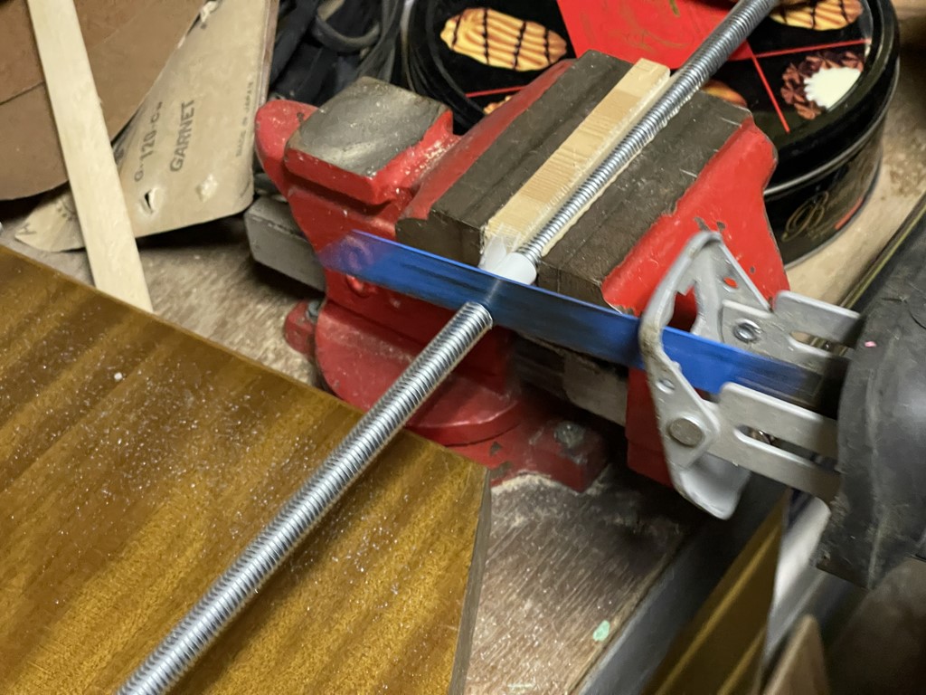 長ネジは以前クランプに使っていた物を再利用。セーバーソーで切断しました。