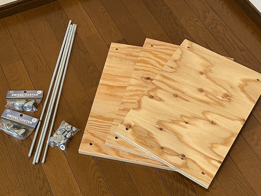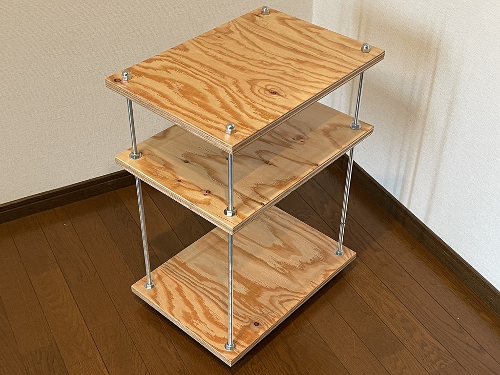 会社のゴミ箱で拾った合板、家にあった長ネジ、ニスを流用して材料代は700円ぐらいかな?安くで作成できました。