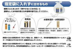 不燃ごみ収集時に、指定袋の中にスプレー缶、ガスボンベ、ライターなどが混入して