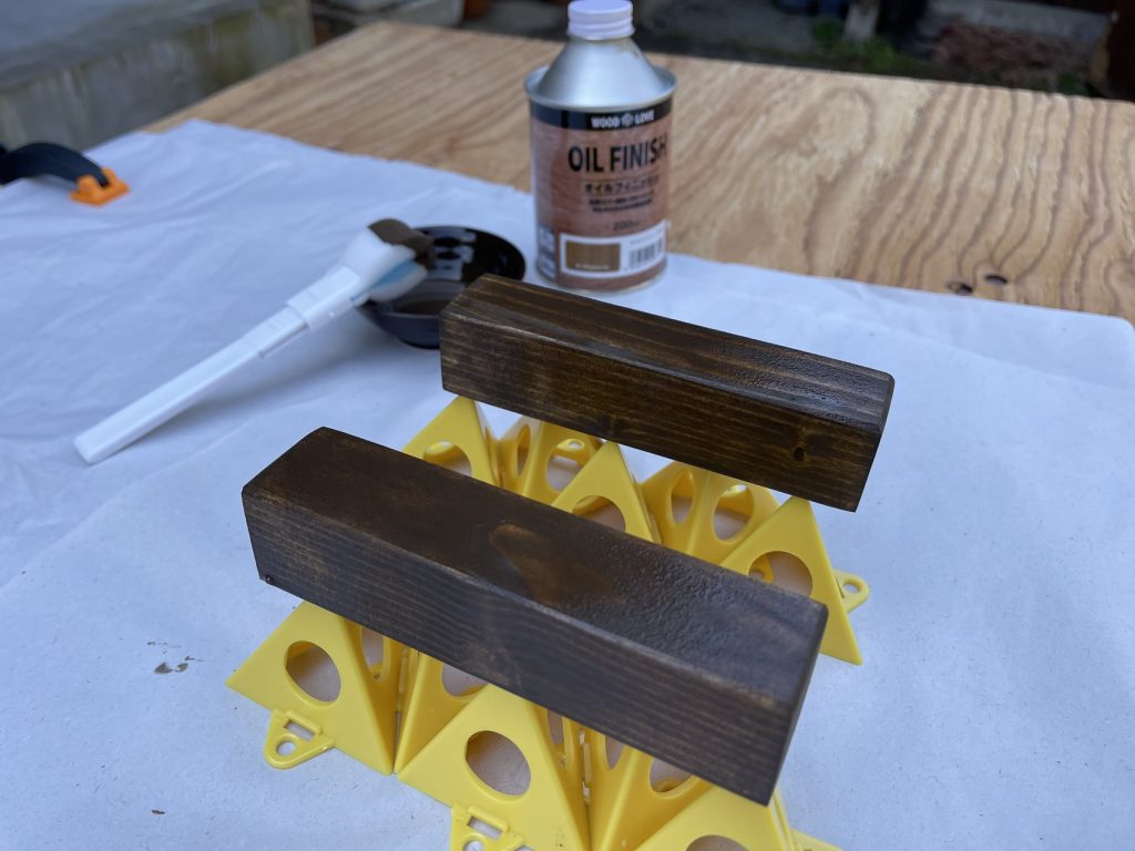 ちょっと面倒ですがオイル塗料を利用しオイルフィニッシュでスベスベになるよう磨いていきます。