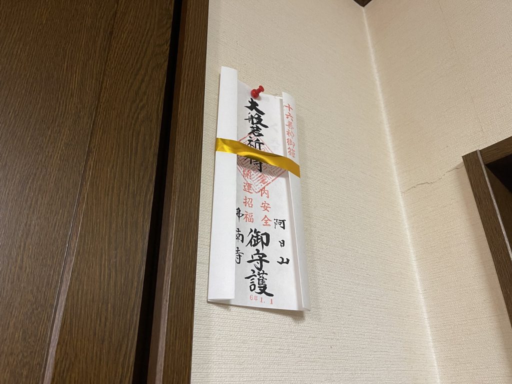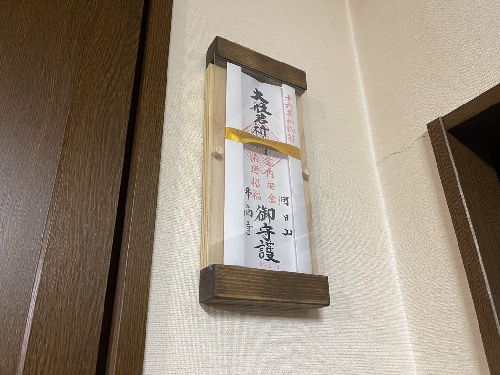 画鋲だけで壁に貼り付けてあったお札が更に立派に見えます。