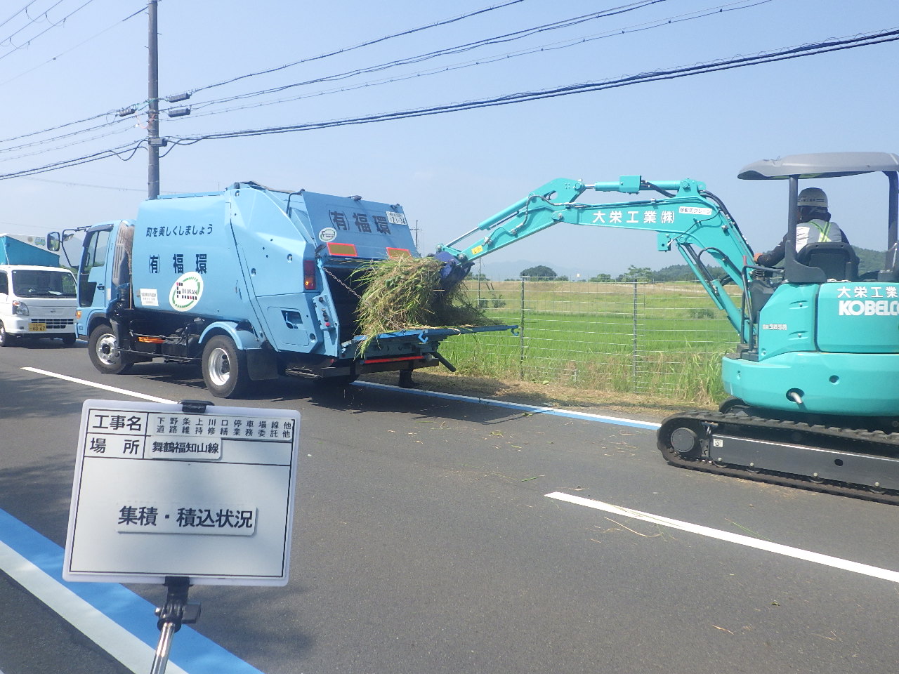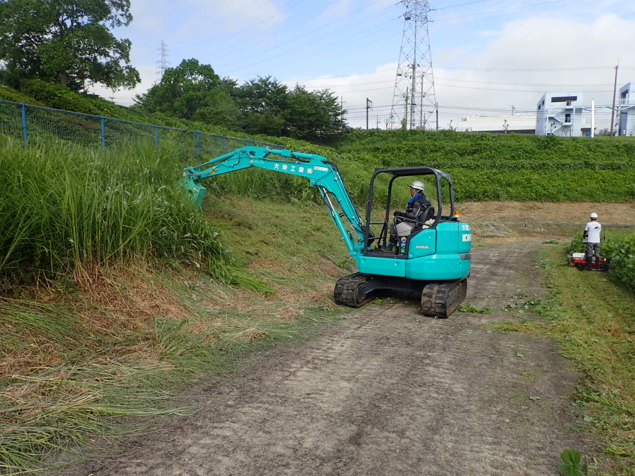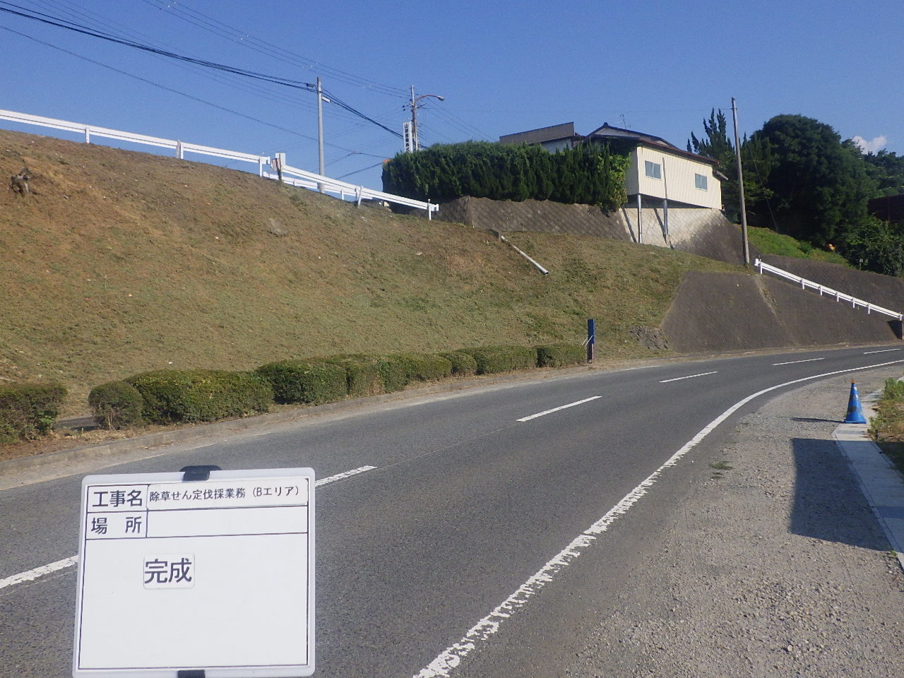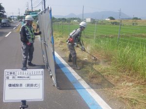 除草作業 投稿日時: 2025年8月7日 投稿者: onogawa こんにちは、工事部の小野川です。 今回は、毎年恒例の除草業務を紹介します。 私達は、福知山市の府道の道路除草業務を行いました。 草刈りによる飛び石が車両等に当たらない用に、防護ネットをもって作業を行います。 建設機械による除草・集草作業になります。 機械化も進み昔に比べると人力作業が少しずつですが、少なくなってきました。 無事に作業を完成することが出来ました。まだまだ暑い日が続きますが、 熱中症にならないよう作業に当たりたいと思います。