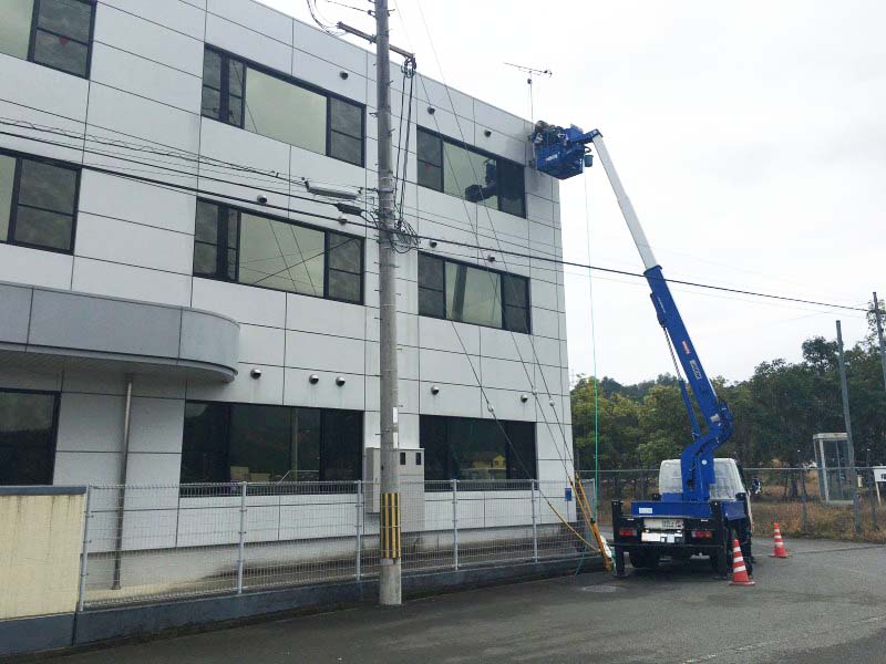 本日は社屋の外壁掃除です。 弊社では年に1、2回社屋外壁の掃除をします。 高所作業車を利用して丁寧に水洗いしていきます。12月なので作業している方は本当に冷たく寒いと思います。ありがとうございます。 作業終了後はやはりピカピカで気持ちいいですね。