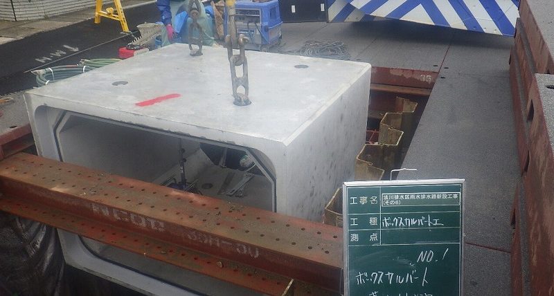 これが、ボックスカルバート(高さ1.76m 幅2.32m 長さ2.00m 重さ6.80トン) です。
