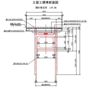 工事内容は、道路に鋼矢板を打込み、覆工板を設置、掘削を行い
